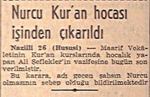 1944 yılında Üstad Bediüzzaman Said-i Nursi’yi Emirdağ’da ziyaret eden Ali Şeflek Hoca, Risale-i Nur okuyor diye savunması alınmadan kendisini müstafi addederler.