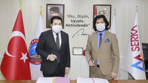Ağrı Belediyesi Başkanlık makamında gerçekleşen imza törenine Ağrı Belediye Başkanı Savcı Sayan ve SERKA Genel Sekreteri Dr. İbrahim Taşdemir katıldı.