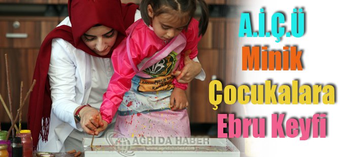 Ağrı İbrahim Çeçen Üniversitesini ziyaret eden minik öğrenciler, hayatlarında ilk kez ebru yapma imkânı buldu.