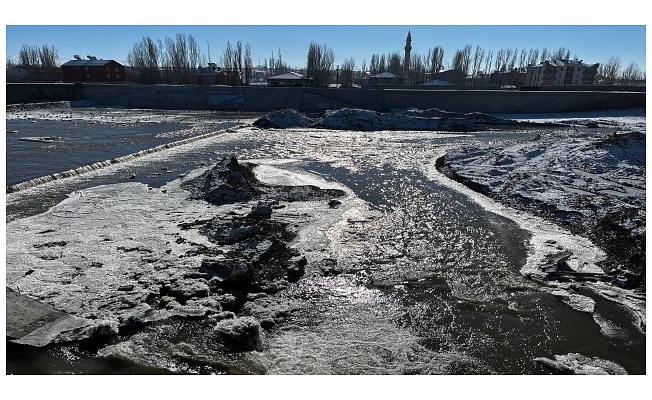 Kış mevsiminin en sert geçtiği illerin başında gelen Ağrı’da bir süre önce etkili olan kar yağışının ardından meydana gelen soğuklar etkisini göstermeye devam ediyor. Yeniden beyaza bürünen kentte, birçok ev ve iş yerlerinin çatılarında buz sarkıtları oluşurken kent merkezinden geçen Murat Nehri’nin yüzeyi de buz tuttu. Bazı araçların camları ise buz tuttu.