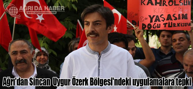 Grup adına basın açıklaması yapan Türkiye Kamu Sen Ağrı İl Temsilcisi Erhan Kılıç, ramazan ayında Sincan Uygur Özerk Bölgesi'nde bir millet kan ağlarken bütün dünyanın bu zulmü seyrettiğini söyledi.