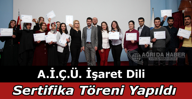 Nezehat Çeçen Konferans Salonunda gerçekleştirilen törene, akademisyenler, idari personel, öğrenciler ve kursiyerler katıldı. Bölgede işaret dili alanında kalifiye eleman yetiştirmek amacıyla açılan 2 aylık Temel İşaret Dili kursu sona erdi.13’ü bayan toplam 18 kursiyerin katıldığı 160 saatlik kursu başarıyla tamamlayanlara sertifikalarının verildiği törende konuşan SEM Müdürü Öğr. Gör. Abdulselami SARIGÜL, işitme engellilerin toplumla bütünleşmesini sağlamak, engel durumları ortandan kaldırmak ve bölgede işaret dili alanında kalifiye eleman yetiştirmek amacıyla bu kursu gerçekleştirdiklerini söyledi.