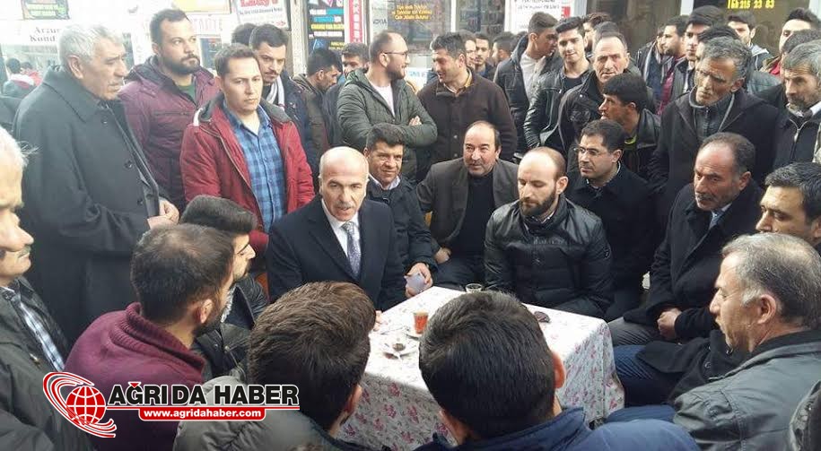 Ağrı Ak Parti İl teşkilatı çalışmalarını aralıksız sürdürüyor. Hafta sonu Van’da Başbakan Ahmet Davutoğlu’nun katıldığı Program için Cuma günü Ağrı ya gelerek Van’a geçen ve akabinde Ağrı ya dönen Ak Parti Milletvekili Cesim göçkeninde refakat ettiği çalışmalarda Ak Partililer tam kadro sokağa indiler.Ak Parti İl Başkanı Kemal Atmaca Merkez İlçe Başkanı Latif Birgül,Ak Parti Milletvekili Cesim Gökçe bir gurup il ve ilçe yöneticisi ile partililerin katıldığı esnaf ziyaretlerde samimi sohbetler gerçekleşti.