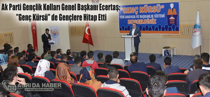 Ecertaş, daha sonra AK Parti Ağrı Gençlik Kolları tarafından Ağrı İbrahim Çeçen Üniversitesi İslami Bilimler Fakültesi Konferans Salonu'nda düzenlenen "Genç Kürsü" toplantısında öğrencilerle bir araya geldi.