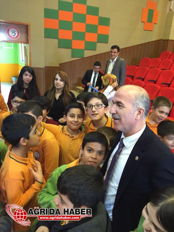 Okul girişinde yetkililer tarafından karşılanan AK Parti Ağrı Milletvekili Cesim Gökçe, salon girişinde öğrencilerden büyük ilgi gördü.