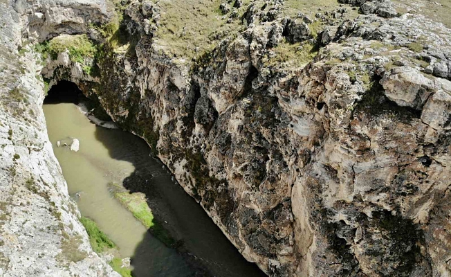 Ağrı’nın Diyadin ilçesinde doğal köprü olma özelliği ile tanınan Kudret Köprüsü manzarasıyla mest ediyor.