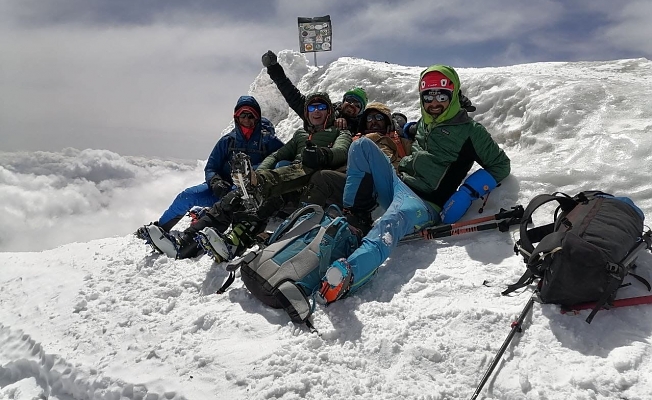 Ağrı Dağı’na çıkan dağcılar bahar ayında zirvede kayak yaptı.
