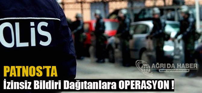 Alınan bilgiye göre, İlçe Emniyet Amirliği ekipleri, "Devrimci Patnos Halk İnisiyatifi" adı altında, Güneydoğu'da uygulanan sokağa çıkma yasağını bahane ederek, "Çarşamba günü Patnos ilçesinde kepenklerimizi açmıyoruz, kontakları çalıştırmıyoruz" yazılı bildiri dağıtan kişilerin bulunduğu bilgisi üzerine operasyon başlattı.