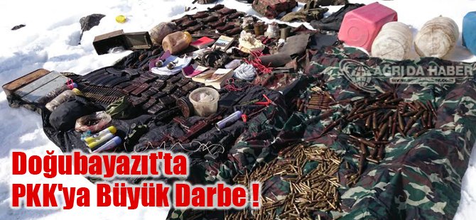 Doğubayazıt Güngören köyü bölgesinde tespit edilen 2 Mağara ve 4 ayrı noktada yapılan arama neticesinde; 2 adet makineli tabanca, 5 bin 660 adet çeşitli cinste fişek, 3 adet 500 gramlık C4 patlayıcı kalıbı, 4 adet 1000 gramlık TNT patlayıcı kalıbı, el yapımı patlayıcı yapımında kullanılan 1000 (20 Varil) kilogram amonyum nitrat, 73 adet elektrikli fünye, 27 adet tüp, 11 adet havan mühimmatı, 2 adet telsiz, bol miktarda kablo, çok sayıda örgütsel doküman ve hayat malzemesi ele geçirilmiştir.