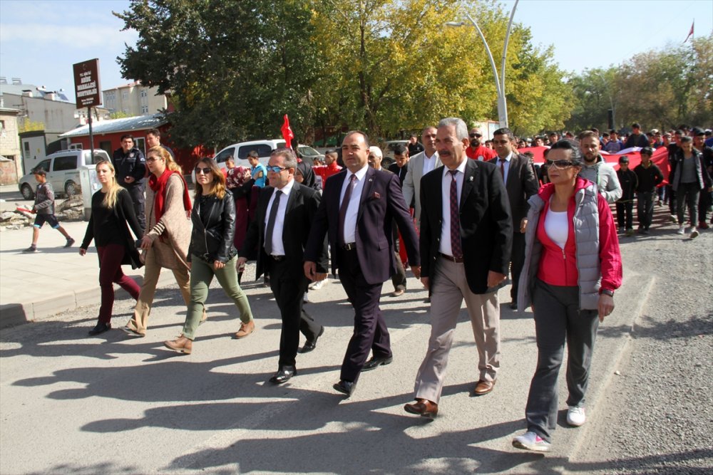 Gençlik Hizmetleri ve Spor İl Müdürlüğü öncülüğünde Cumhuriyet Caddesi'nde toplanan grup, Ağrı Valiliği Mehter Takımı eşliğinde Vali Lütfi Yiğenoğlu Stadyumu'na kadar yürüdü.