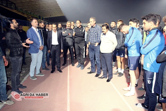 Kurban kesiminden sonra yönetim kurulu, teknik heyet ve ağrı spor takımı ile beraber ağrı spor basın sözcüsü deniz budak basın açıklaması yaptı.