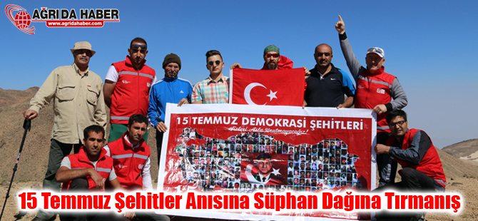 Ağrı Dağcılık İl Temsilciliği ile Aile ve Sosyal Politikalar İl Müdürlüğü tarafından 15 Temmuz Demokrasi ve Milli Birlik Günü dolayısıyla Süphan Dağına zirve tırmanışı yapıldı.
