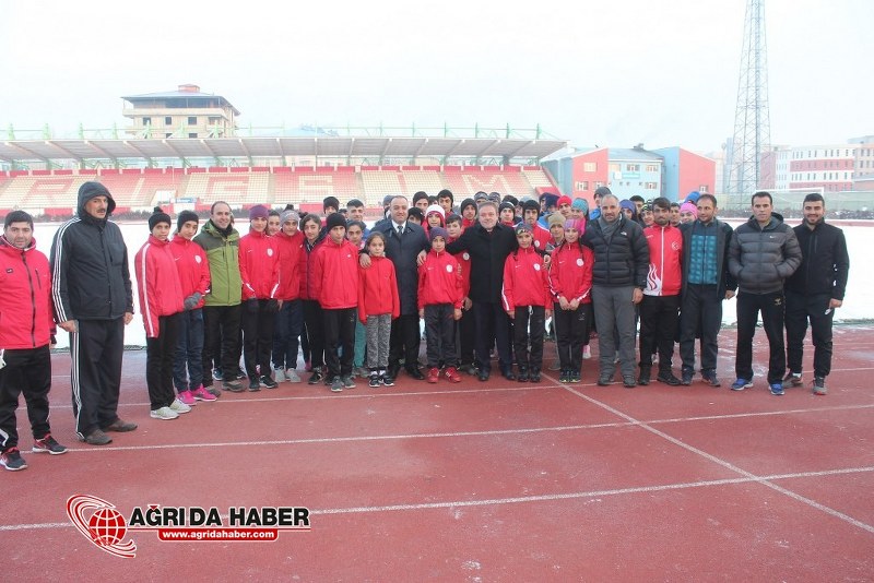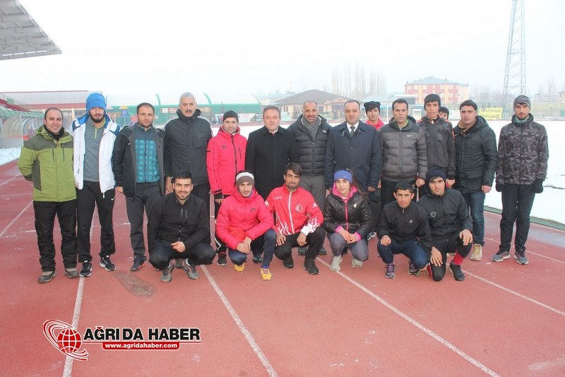 İl Müdürü Alp, şehir stadyumunda atletizm branşına yönelik antrenmanlarını sürdüren sporcuları ziyaret edip, tatlı ikramında bulundu. Burada sporcu ve antrenörlerle sohbet eden İl Müdürü Alp, "Son dönemlerde Ağrı atletizm branşında milli takıma çok sayıda önemli sporcular gönderdi. Sizde bu soğuk havaya aldırış etmeden çalışmalarını devam ettiriyorsunuz. Bu çalışma azminiz sizleri en kısa sürede üst seviyeye çıkaracaktır. Buna gönülden inanıyoruz. Sizlere çalışmalarınızda başarılar diliyorum" dedi.