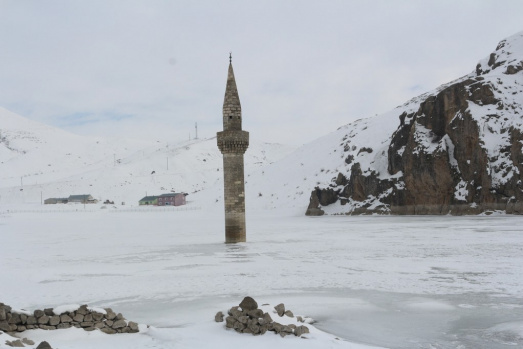 Ağrı Yazıcı Barajında Buzlar Arasında ayakta duran Minare