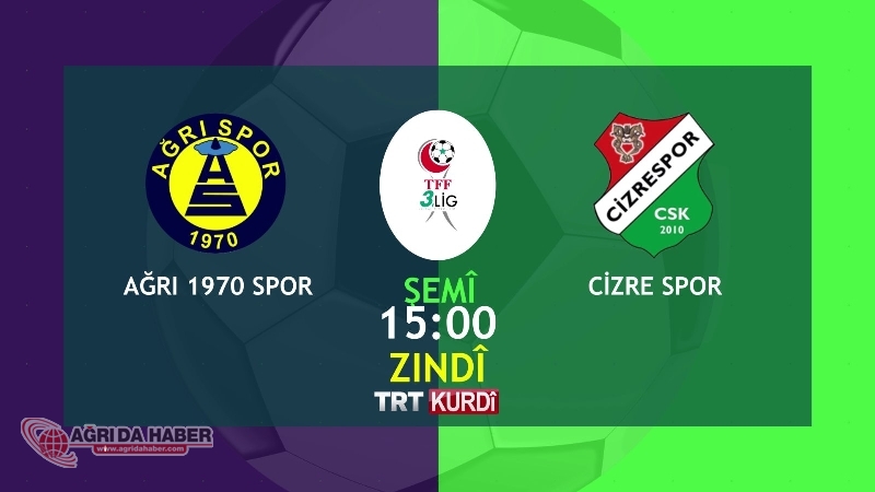 3.Lig 2.Grup’ta 21 Eylül Cumartesi günü oynanacak Ağrı 1970Spor-Cizrespor karşılaşması saat 15.00’dan itibaren Kürtçe ve Türkçe çift dilli anlatımla canlı olarak izlenebilecek.