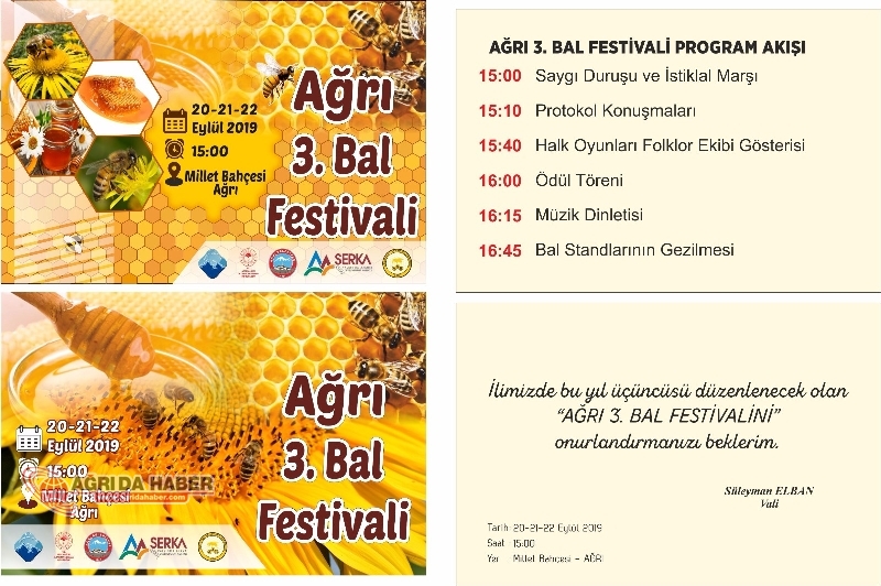 “Ağrı 3. Bal Festivali”ne tüm halk davetlidir.