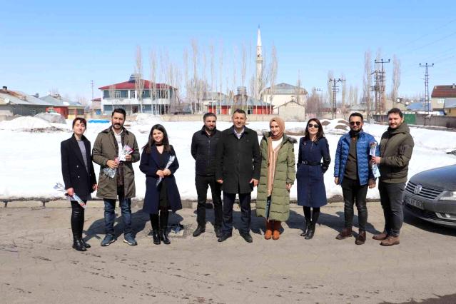 Ağrı Barosu Kadın Hakları Komisyonu ve Ağrı Barosu gönüllüleri, 100. Yıl, Fatih ve Bulut mahallelerinde kadınlara çiçek dağıttı. Ağrı Baro Başkanı Av. Mehmet Salih Aydın, bir farkındalık oluşturmayı amaçladıklarını söyledi. Kadınlara çiçek vermenin yanında yasal hakları konusunda da bilgilendirdiklerini belirten Aydın, “Bugün 8 Mart Dünya Emekçi Kadınlar Günü. Biz Ağrı Barosu olarak bir farkındalık oluşturmak istedik. Bu günü Ağrı'nın Fatih, 100. Yıl ve Bulut mahalleleri gibi mahallelerimizde bulunan hayatın gerçek emekçileri olan kadınlarımızla paylaşmak istedik. Ağrı Barosu Kadın Hakları Komisyonu ve Ağrı Barosu gönüllüleri ile birlikte bugün bu dış mahallelerimizdeki kadınlarımız, kız kardeşlerimiz ve bacılarımızla buluşmaya geldik. Kapı kapı dolaşıp günlerini kutladık. Aynı zamanda yasal hakları konusunda kendilerine çeşitli bilgiler aktardık. Şunu görüyoruz ki insanlarımız inanılmaz derecede mutlu oluyor. Bu gün kapılarına gidip kendilerine çiçek verdiğimiz birçok kadın, belki de hayatlarında ilk defa çiçek aldılar. İşte bu tarif edilemez mutluluğu onlarla birlikte yaşamak, hakikaten bizlere ayrı bir mutluluk verdi. Gerçek emekçilerimizin olduğu mahallelerde kadınlarımızla buluşup, onların günlerini kutladık. Bizim insanlarımız hakikaten yüreği geniş, sevgisi bol olan insanlar. Biz kendilerine çiçek verdik. Onlar da bizlere taze, sıcak tandır ekmeklerinden verdiler. Böyle güzelliklerle karşılaştık. Yani siz bu insanlara geldiğiniz zaman halen o doğallığı, mutluluğu görüyor ve yaşıyorsunuz” dedi.