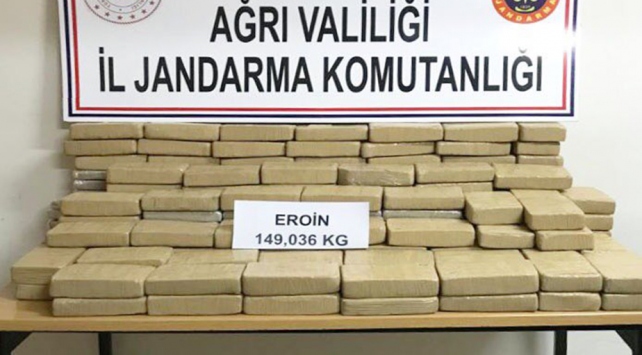 Jandarma personeli tarafından İran plakalı tıra yapılan operasyonda, dorse kısmında PVC malzemelerinin arasına saklanmış halde 149 kilogram eroin yakalandı.