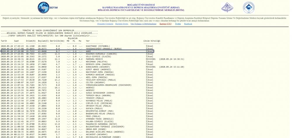 Ağrı'da 8.7 KM derinliğinde 2.6 Şiddetinde deprem meydana geldi. Deprem birçok yerde hissedildi ve kısa sürelik paniğe neden oldu.