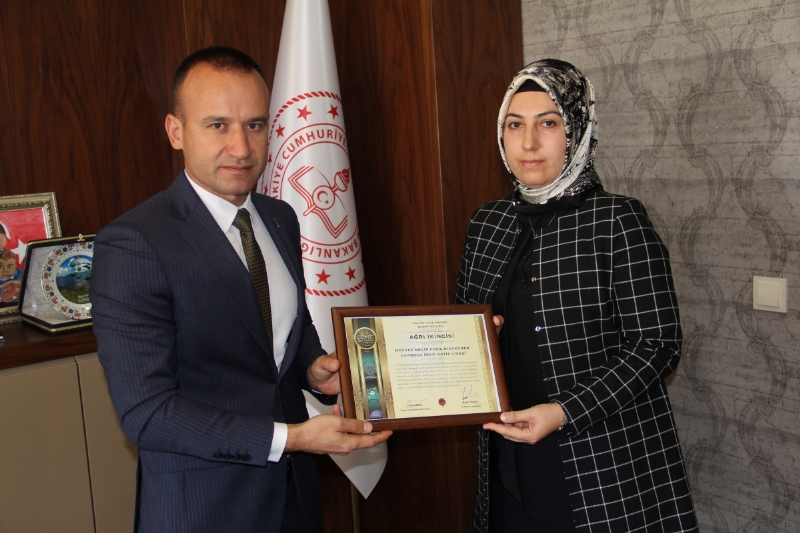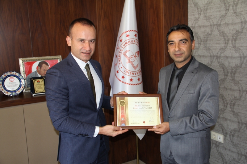 Ağrı İl Milli Eğitim Müdürü Mehmet Faruk Tekin, Milli Eğitim Bakanlığı Din Öğretimi Genel Müdürlüğü tarafından Anadolu İmam Hatip Liseleri ve İmam Hatip Ortaokullarında uygulanan Kalite Takip Sistemi'nde yapılan değerlendirmede ilk 5’e giren okulların müdürlerine başarı belgeleri verdi.