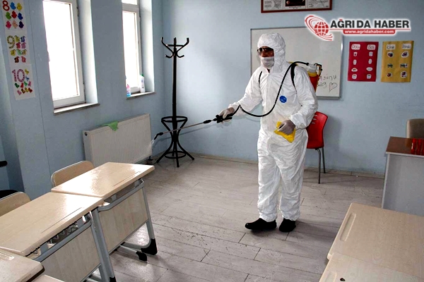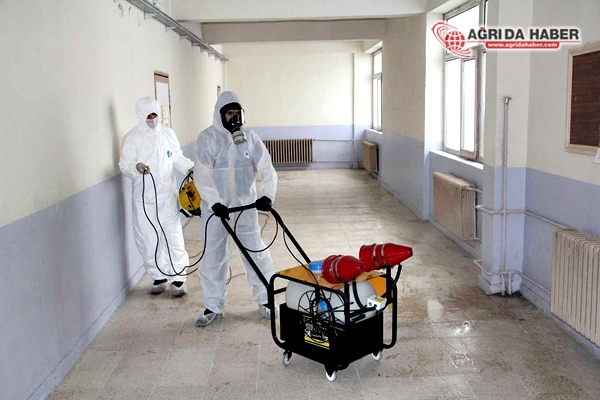 Ağrı İl Milli Eğitim Müdürlüğü, okullarda ve kurumlarda Corona virüsüne karşı alınan önlemler kapsamında il merkezi, ilçeler ve köylerde 517 okulda dezenfekte işlemini tamamladı.