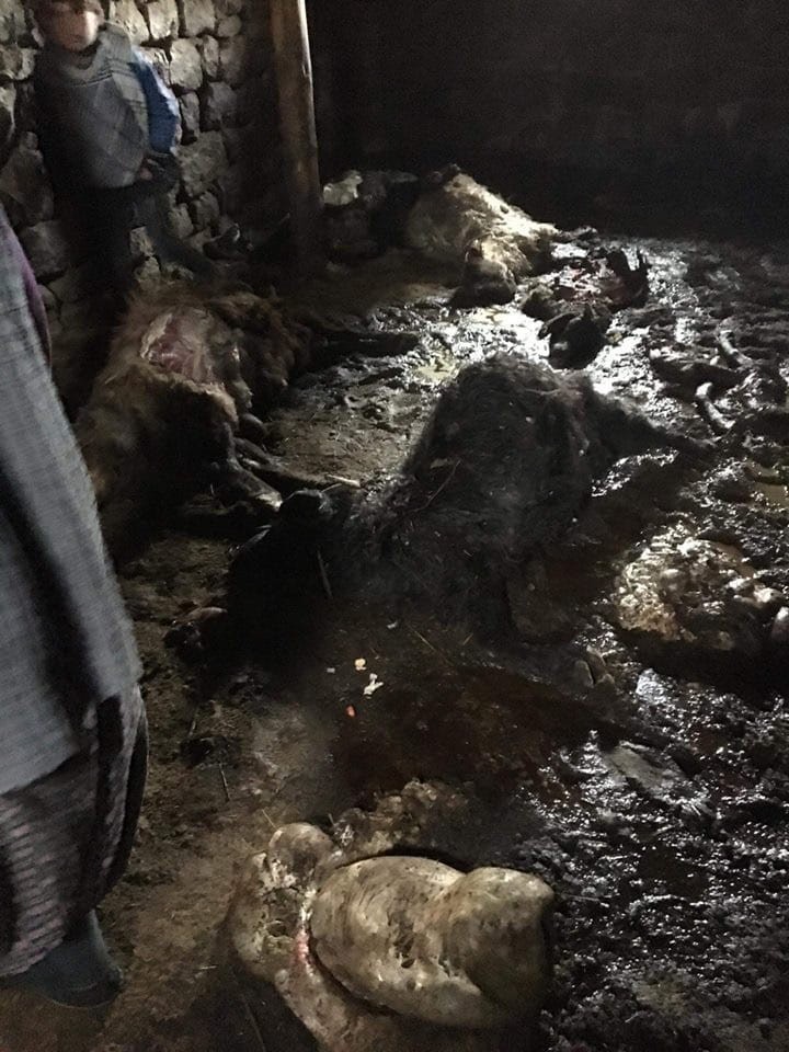 Ağrı'da kırsalda aç kalan kurtlar gece koyunların bulunduğu ahıra girerek 30 koyunu telef etti.