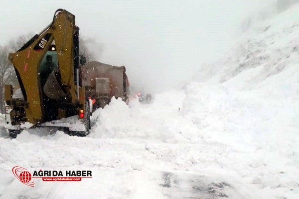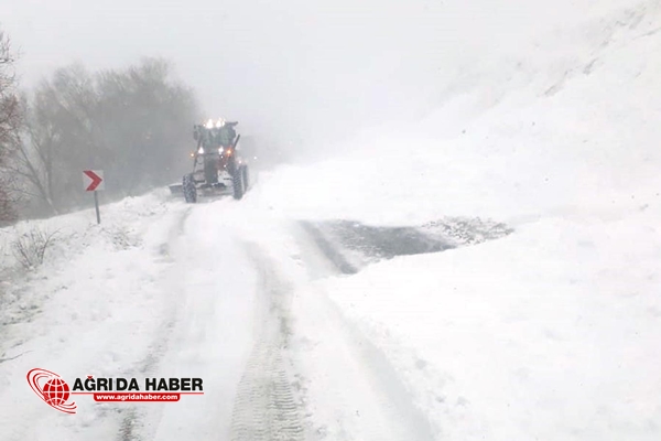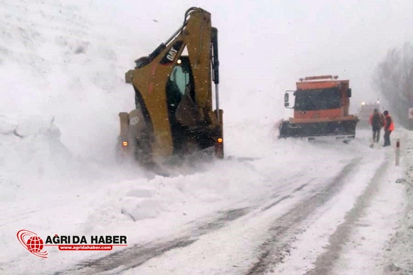 Sabah saatlerinde Ağrıda başlayan kar yağışının tipiye dönüşmesinin ardından şehirlerarası yola çığ düştü.