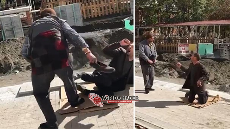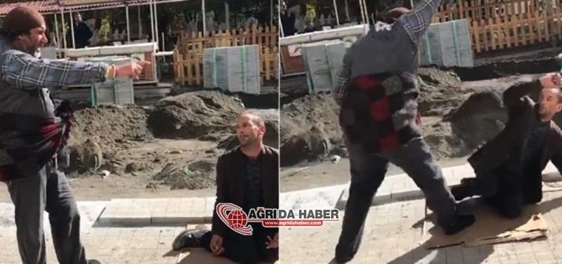 Ağrı'nın en işlek caddesi olan Cumhuriyet Caddesi'nde yer yüzünden kavga eden iki dilenciyi çevredeki vatandaşlar ayırdı.