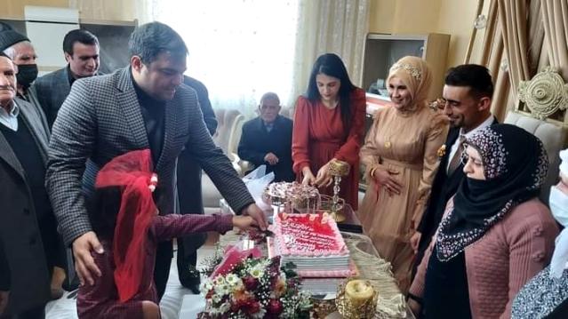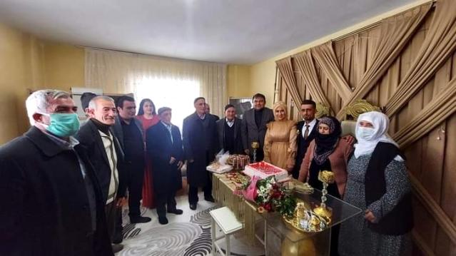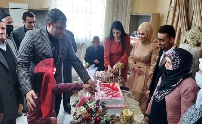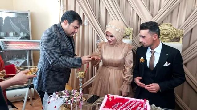 Aslan ve Karip ailesinin bu mutlu gününde yalnız bırakmayan kaymakam Alper Balcı, genç çifti tebrik ederek nişan kurdelesini kesti.
