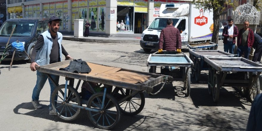 İşsizliğin yoğun olarak yaşandığı yerlerden biri olan Ağrı'da, dört tekerlekli el arabalarıyla hamallık yaparak geçimini sağlamaya çalışan el arabacıları, taşımak için yük bulamadıklarından yakınıyor.