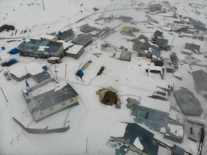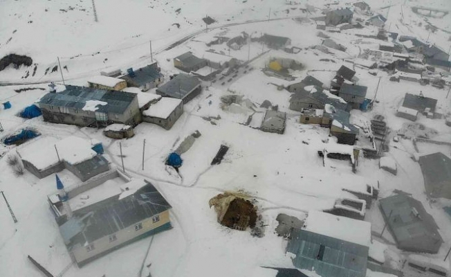 Ağrı'da yüksek bölgelerde bulunan köylerde evler kar altında kaldı.