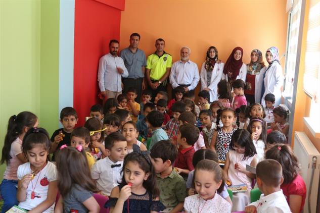 Program sonunda öğrencilere Müftü Topçu tarafından kırmızı düdük ve boyama kitabı hediye edildi.