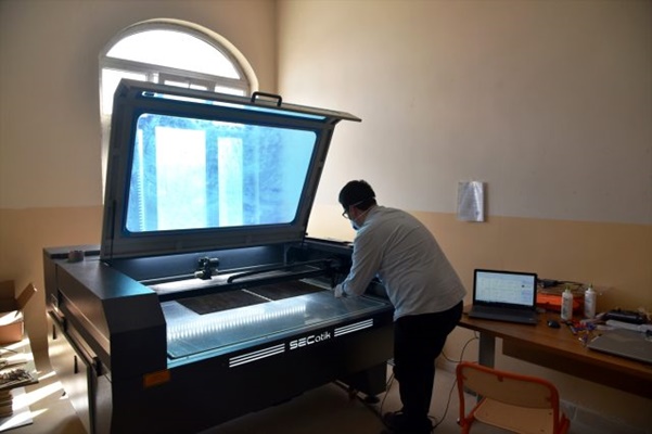 Ağrı'da İl Milli Eğitim Müdürlüğü bünyesindeki Bilim Sanat Merkezinde görevli öğretmenler, yeni tip koronavirüs (Kovid-19) salgınında hayatları pahasına fedakarca çalışan sağlık çalışanları için lazer kesici ve 3 boyutlu yazıcı ile maske üretiyor.