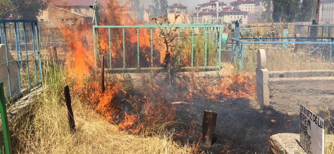 Fırat Mahallesi'nde yer alan Fırat Mezarlığı'ndaki kuru otların henüz belirlenemeyen sebeple tutuşmasıyla yangın çıktı.