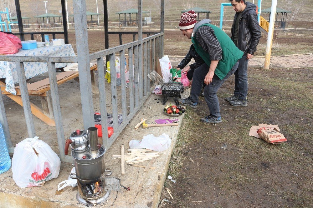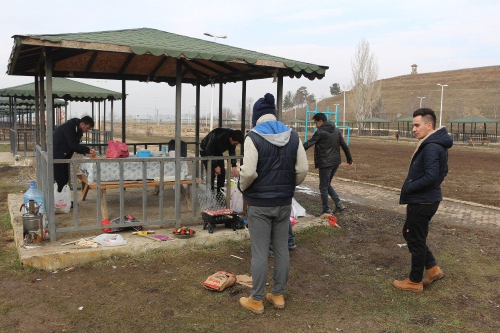 Ağrı'da 20 gün önce yağan kar, havaların ısınması ve yağmurun yağmasının ardından tamamen eridi. Mevsim normallerinin üzerinde seyreden hava sıcaklığı vatandaşlar tarafından şaşkınlıkla karşılanıyor. Geçen sene bu zamanlar hava sıcaklığının eksi 30 dereceleri gördüğü kentte, bu yıl havaların sıcak olması vatandaşların yüzünü güldürüyor. Öte yandan Hafta sonu ve 1 günlük yılbaşı tatilini fırsat bilen öğretmenler, kent merkezi dışında bulunan Selahaddin Eyyubi Parkında mangal yakarak piknik yaptı. Yeni yıla piknik yaparak giren öğretmenler, bir yandan semaverle çay yaparken, bir yandan da mangal üzerinde domates ve biber közledi. Öğretmenler, mangalda pişirdikleri etleri yiyerek 2018 yılına piknikle merhaba dedi.