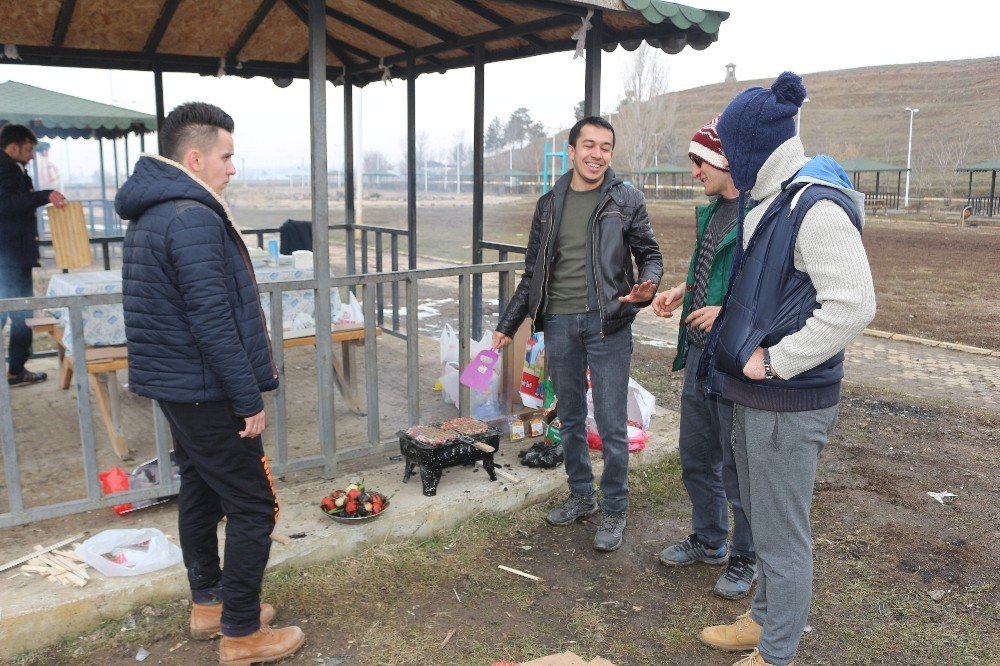 Ağrı'da farklı okullarda yıllardır görev yapan öğretmenler, yılbaşı tatilini fırsat bilip parkta mangal yakarak 2018 yılına girdi.
