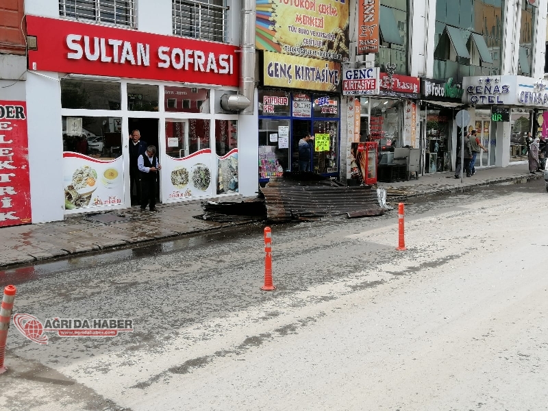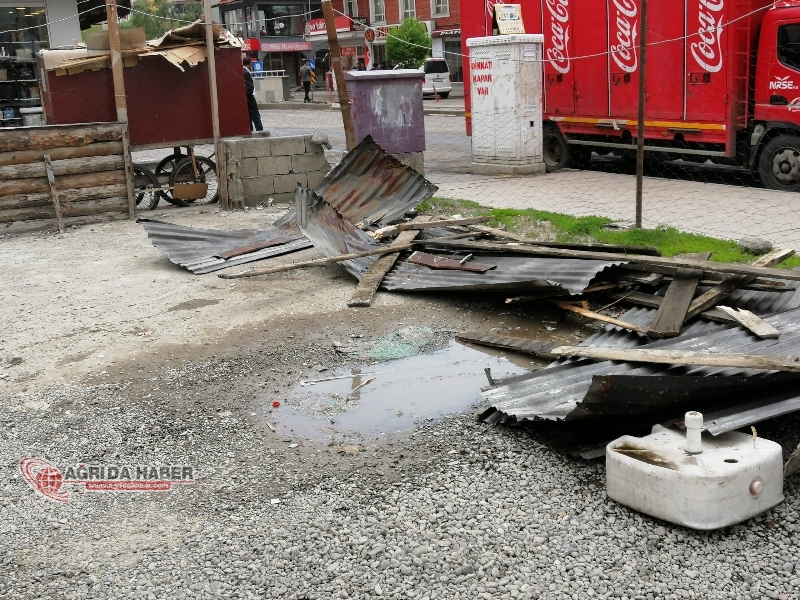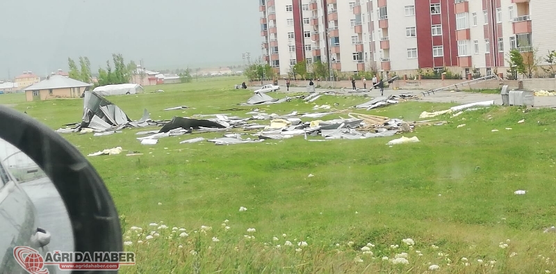 Ağrı'da gün içinde aniden bastıran sağanak yağış ve rüzgar hayatı durma noktasına getirdi. Şiddetli rüzgar nedeniyle bazı binaların uçan çatıları cadde ortasına ve arabaların üzerine düşerken, vatandaşlar korkulu anlar yaşadı.
