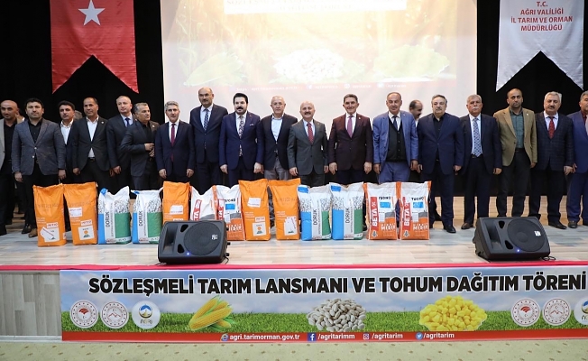 Ağrı'da, tarım alanında yapılan destekler kapsamında “Sözleşmeli Tarım Lansmanı ve Tohum Dağıtım Töreni” düzenlendi.