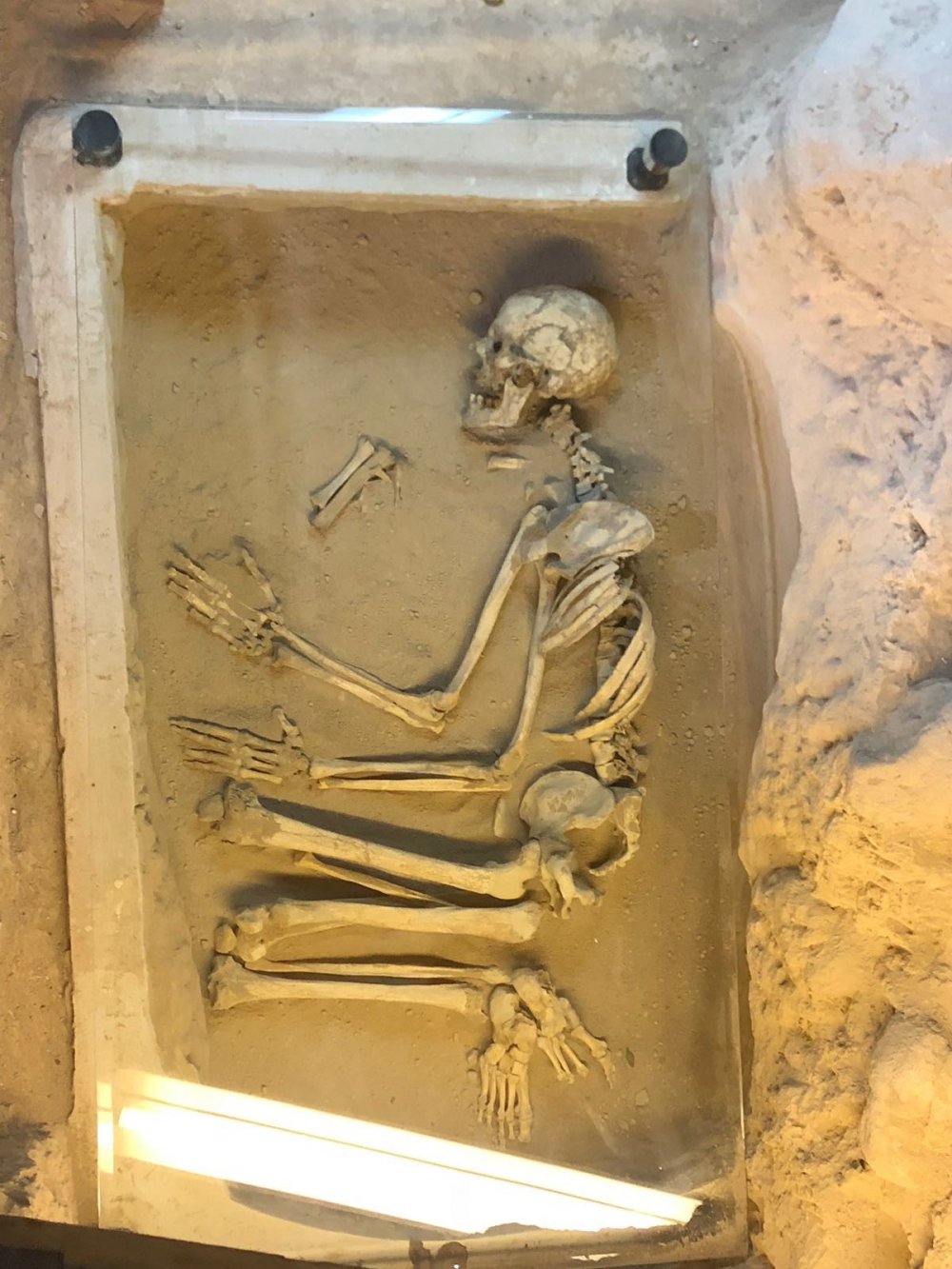Müzelerden çıktıktan sonra 3200 senelik demir çağı müzesine gidiyoruz. Bir iş yerinin yapımı sırasında ortaya çıkan bu müzenin 11 yıllık bir geçmişi var. Müzeye girişte ilk gördüğünüz mezar içerisinde iskelet yapısı hiç bozulmadan günümüze kadar gelmiş bir insan iskeleti bulunuyor. İskeletlerden, insanların dizleri çekili şekilde gömüldüğü anlaşılıyor. Bunun sebebi ise insanları anne karnında doğdukları gibi gömülmüş olmaları. Ölümden sonraki hayata lan inançtan dolayı yemek ve su kapları iskeletlerin yanlarında görülüyor. Zengin olanların daha fazla yemek kabı bulunuyor. İnsanlar Güney kuzey yönünde gömülmüş vaziyette yer alıyor. Çıkışta Müze defterine duygularınızı yazmayı unutmayınız.