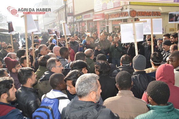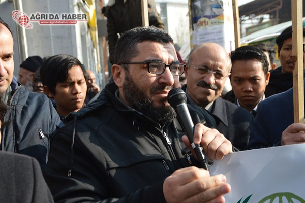 Kerem Engin'in açıklamasından sonra Suriyeli ve aynı zamanda Ağrı İbrahim Çeçen Üniversitesi akademisyenlik yapan Dr. Eymen Haruş Arapça olarak kısa bir konuşma yaptı. Açıklamanın ardın Ağrı Müftülüğü Vaizlerinden Nuri Arslan'ın yaptığı dua ile basın açıklaması son buldu.