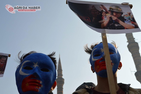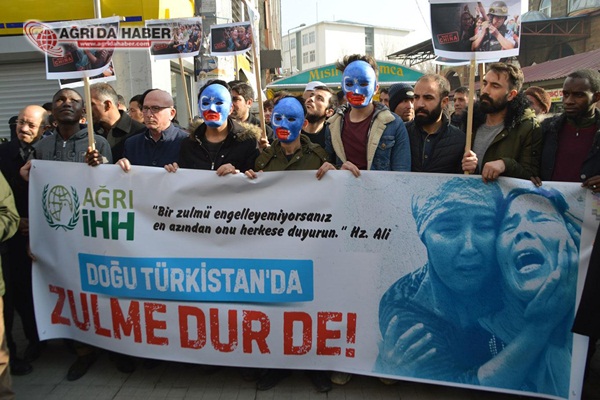 Basın açıklamasını İHH Ağrı Şube Başkanı Kerem Engin okudu. Engin açıklamasında, 2000 yılı sonrasındaki siyasi, ekonomik ve askeri atılımlarla gündeme gelen Çin'in, sınırlarının doğu ve batısında iki farklı yüzle ortaya çıktığını kaydetti.