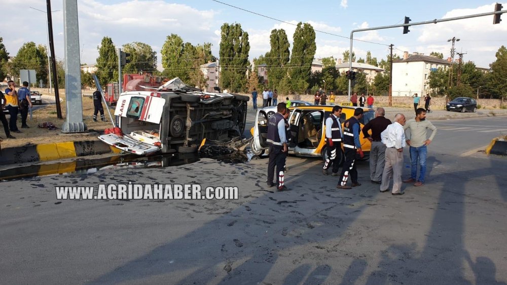 Ağrı'dan Van'a hasta götüren İsmet Demirci idaresindeki 04 DE 885 plakalı ambulans, Patnos Adliye Kavşağı'nda Mehmet Bilici yönetimindeki 04 T 5021 plakalı taksi ile çarpıştı.