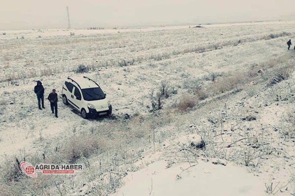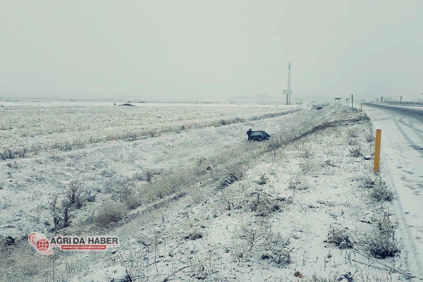 Ağrı'da 3 gündür etkili olan yağmur yerini bugün kara bıraktı. Kara hazırlıksız yakalanan bazı sürücüler, direksiyon hakimiyetini kaybederek yoldan çıktı.
