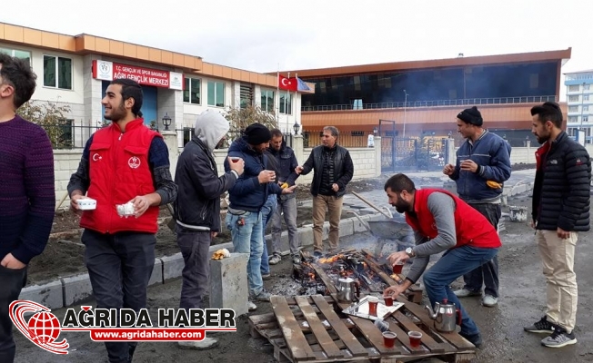 Ağrı Gençlik Merkezi sosyal ve kültürel faaliyetleri yanı sıra vatandaşlara da yardım etmeyi ihmal etmiyor. Şehir Merkezinde ki kaldırım taşları onarımında ve yapımında çalışan işçilerin sıcak çay ihtiyacını karşıladı.