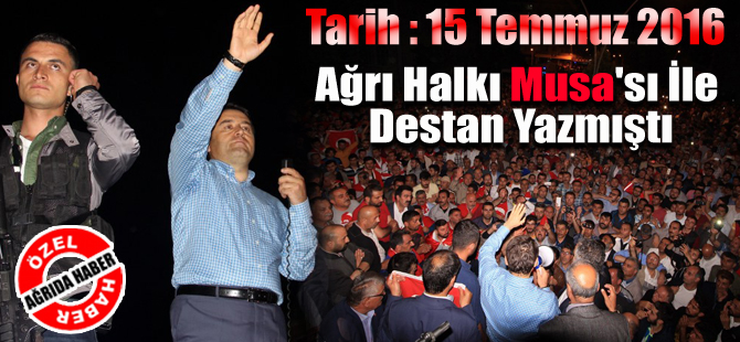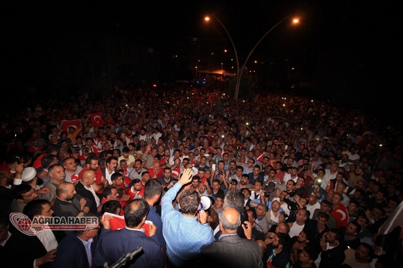 On binlerce Ağrılı cadde ve sokaklara döküldü. Milli Birlik ve ülke bütünlüğüne yapılan kalkışmaya karşı Vali Musa Işın'ın sosyal medya hesabından yapmış olduğu çağrı üzerine Ağrılılar akın akın Valilik önüne toplandılar. Yoğun kalabalık nedeni ile cadde ve sokaklarda kilometrelerce kuyruk oluştu.