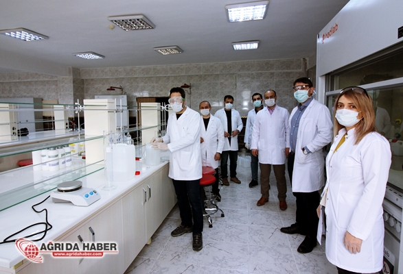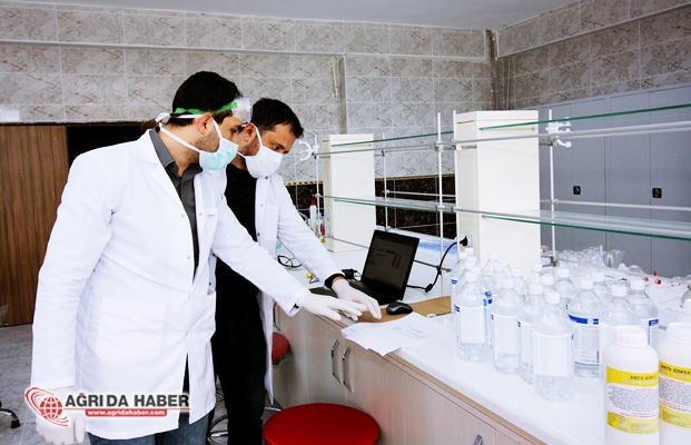 Tüm dünyada etkili olan Korinavirüs (COVID-19) kapsamında yürütülen çalışmalara destek olmak amacıyla Eczacılık Fakültesi akademisyenlerince gerçekleştirilen çalışmalar kapsamında Sağlık İl Müdürlüğü’ne bağlı Ağrı Devlet Hastanesi tarafından temin edilen alkol,Dünya Sağlık Örgütü’nün el antiseptiği hazırlanmasına ilişkin kimyasal formülüne uygun olarak, 240 litre el dezenfektanına dönüştürüldü.