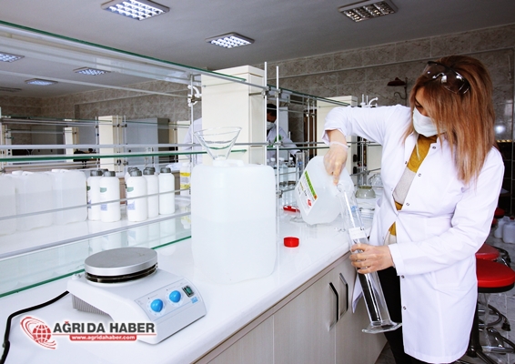 Ağrı İbrahim Çeçen Üniversitesi (AİÇÜ) Eczacılık Fakültesi tarafından Ağrı Devlet Hastanesi’nin bir aylık ihtiyacını karşılayabilecek el dezenfektanı üretilerek teslim edildi.