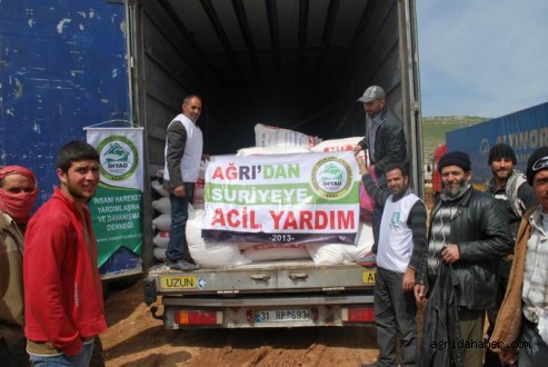 Suriyeli kardeşleri için “Ağrı Ekmeğini paylaşıyor” sloganı ile yola çıkan İHYAD çok kısa sürede hedeflediği bir TIR dolusu una ulaştı. Ağrılı hayırsever vatandaşların yoğun ilgi gösterdiği yardım kampanyası Acil ihtiyaç olan ekmek için 25 Ton Unu Suriye’ye ulaştırdı.