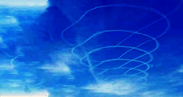 Kavisler çizerek uçan bir hava aracının bıraktığı dairesel iz, vatandaşlar tarafından anbean görüntülendi.