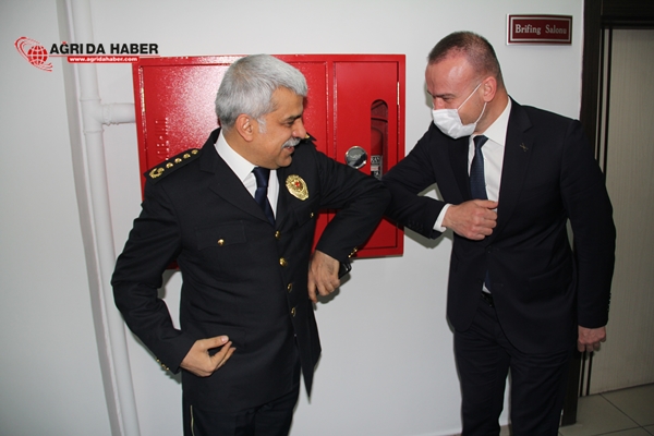 Ağrı İl Milli Eğitim Müdürü Mehmet Faruk Tekin, Türk Polis Teşkilatı’nın 176. Kuruluş Yıl Dönümü ve 10 Nisan Polis Haftası dolayısıyla İl Emniyet Müdürü Nihat Özen’i makamında ziyaret ederek tüm emniyet teşkilatının 10 Nisan Polis Haftası’nı kutladı.